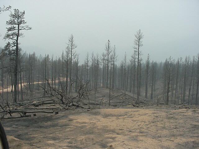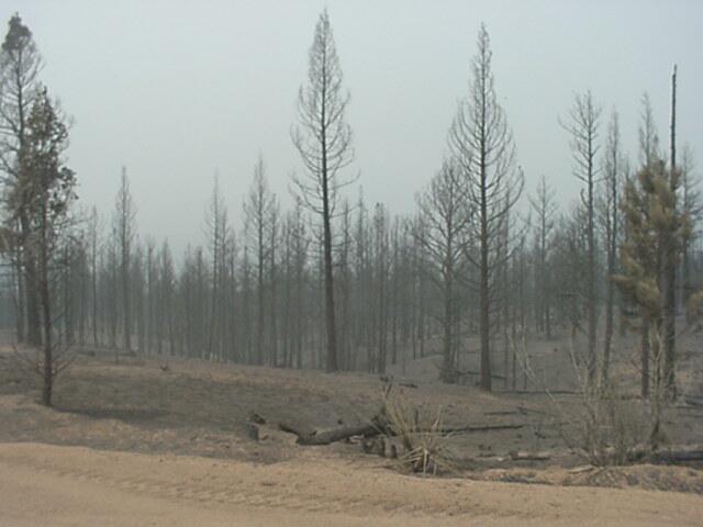 fire-consumed landscape as they passed through about 12 miles of burned forest
